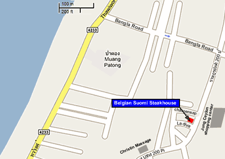 Je vindt Belgian Suomi Steakhouse en ons hotel met zeven kamers in de rustige straat " Soi La Diva" recht tegenover het winkelcentrum Jung Ceylon.